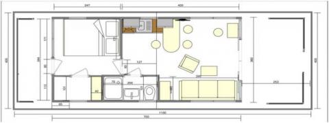 Powierzchnia mieszkalna: 3,6 m x 7 m = 25,2 m2