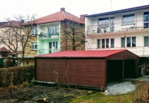 • Garaż wykonany z blachy akrylowej oraz drewnopodobnej