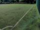 Używane boisko piłkarskie ze sztucznej trawy z zasypką.