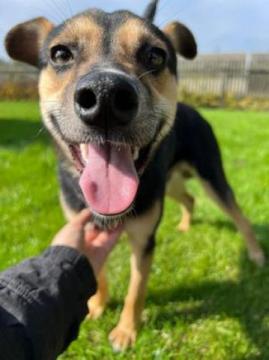 Dilya to młody chłopiec, ur. 22.06.2022 , który docelowo będzie średnim psiakiem. Przyjechał ze wschodniej części Ukrainy z terenów walk. Miał zranioną tylna łapkę, która już się zagoiła.