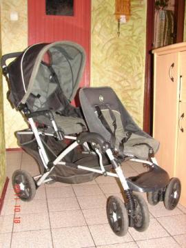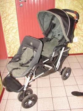 Mam do sprzedania bliźniaczy wózek firmy Mothercare. Wozek przeznaczony dla rodzeństwa w podobnym wieku (rok, dwa lata różnicy).w pierwszym siedzeniu- przeznaczonym dla starszego dziecka- oparcie opuszczane do pozycji pollezącej natomiast w drugim oparcie opuszczane do pozycji leżącej. w wozku pojemny kosz na zakupy. Przednie kola skrętne z możliwoscią blokady. wozek wygodny w prowadzeniu, skrętny. Do kazdego siedzenia pasy i podporka na nozki. Polecam. tel. 814591487 lub 505386973.