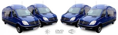 Nasze wszystkie samochody są wyposażone w DVD, TV,klimatyzację oraz darmowy Internet WIFI na całej trasie podróży.