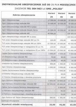 Wybierz odpowiedni wariant(patrz zdjęcie) i zadzwoń, bądź wyślij sms o treści :"POLISA" na nr 781 004 963
