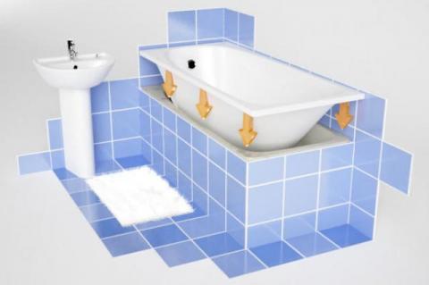 Stara wanna pełni rolę stabilnego stelaża i ocieplenia dla nowej wanny.