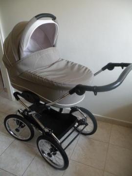 Oferuję wózek głęboki polskiej firmy Navington model Caravel, z gondolą Genua z 2013 roku w kolorze Aruba. Kolor elegancki dla chłopca lub dziewczynki.