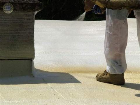 Uszczelnienia przeciekających dachów płaskich natryskową pianką poliuretanową.
