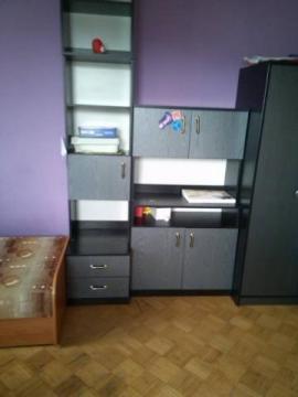 Pokój ma około 16 m2, jest umeblowany ( szafa, półki, biurko, fotele) jedno łóżko zostało wymienione 2 lata temu. Ogólnie pokój jest zadbany, jest możliwość pomalowania pokoju ( więcej szczegółów telefonicznie ;) ) Z pokoju wyjście na balkon.