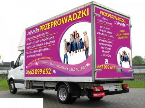 Justa Przeprowadzki firma z Lublina oferuje kompleksową obsluge przeprowadzkowa 70 zl za godzine w tym 2 pracownikow do noszenia i transport na terenie miasta