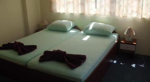 Hotel oferuje pokoje 2, 3 osobowe, jak również apartamenty dla 4, 5, a nawet 6 osób. Łącznie jest ich 15. Wszystkie pokoje są funkcjonalnie urządzone i posiadają własny węzeł sanitarny (w tym bezpłatne kosmetyki), wyposażony taras, małą lodówkę (mini- barek), klimatyzację, telewizję kablową (w tym TV Polonia), jak również dostęp do bezpłatnego internetu Wi- Fi. Na każdym piętrze znajduje się deska do prasowania i żelazko. Z pokoi roztacza się widok w kierunku parku, lub morza.