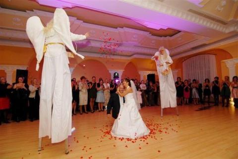 Chrzciny "małego aniołka" z całą pewnością utkwią na bardzo długo w pamięci zgromadzonych gości i rodziny gdy małemu już ochrzczonemu aniołkowi będą towarzyszyły anioły na szczudłach.