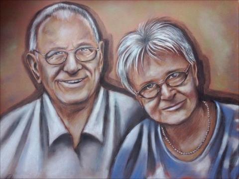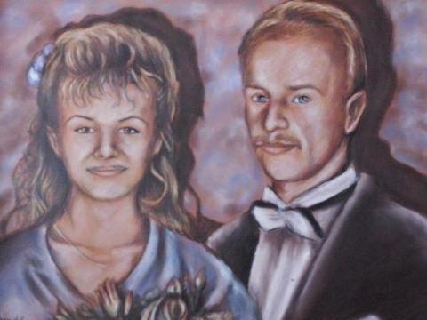 Portrety na zamówienie – portrety realistyczne,na płótnie farbami olejnymi, lub w rysunku – czarno białe wykonane ołówkiem lub wielokolorowe kredkami pastelowymi.Portrety maluję ze zdjęć nadesłanych przez klienta. Cena portretu zależy od formatu i ilości portretowanych osób,oraz rodzaju pracy np. obraz olejny lub rysunek ( Np. portrety jednej osoby pełen kolor wykonany kredkami pastelowymi o wymiarach 70cm na 50cm 150 zł.)